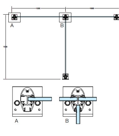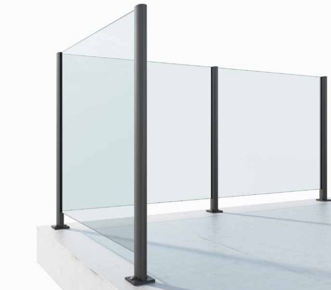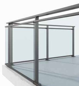- zastosowanie szkła w dolnej szynie z poręczą na górze,